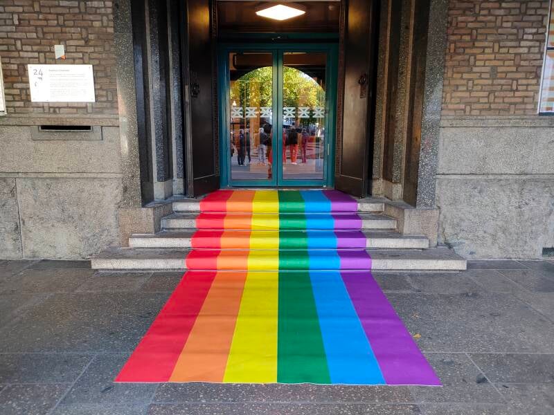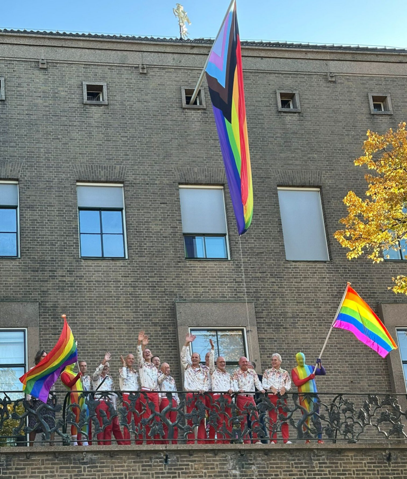 Na het ontbijt staken we samen met wethouder emancipatie en inclusiviteit Arjan Kampman de regenboogvlag uit op de zolder van het stadhuis.