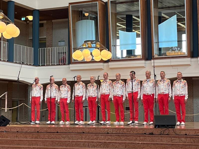 Soorten & Maten - in nieuwe kooroutfits - bij een optreden in het stadhuis van Hengelo tijdens Amusing Hengelo 2023.
